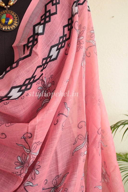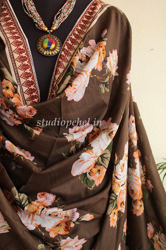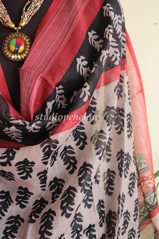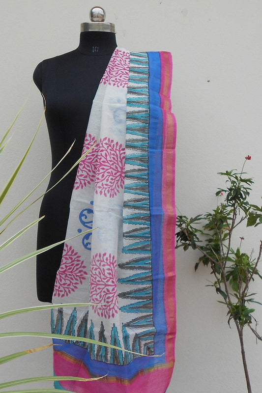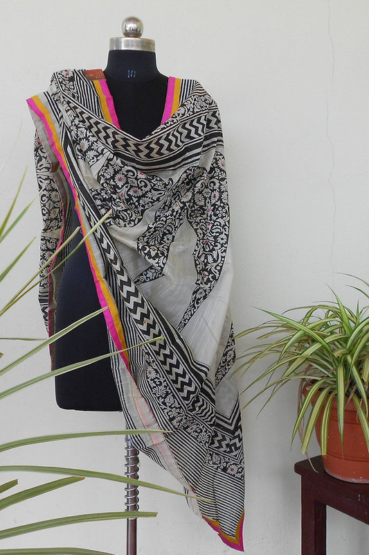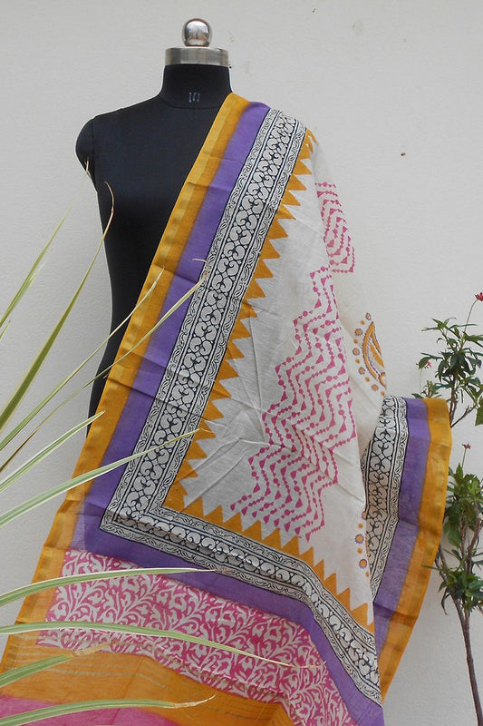 Out Of StockIvory Violet Handpainted chanderi dupatta