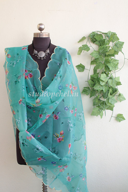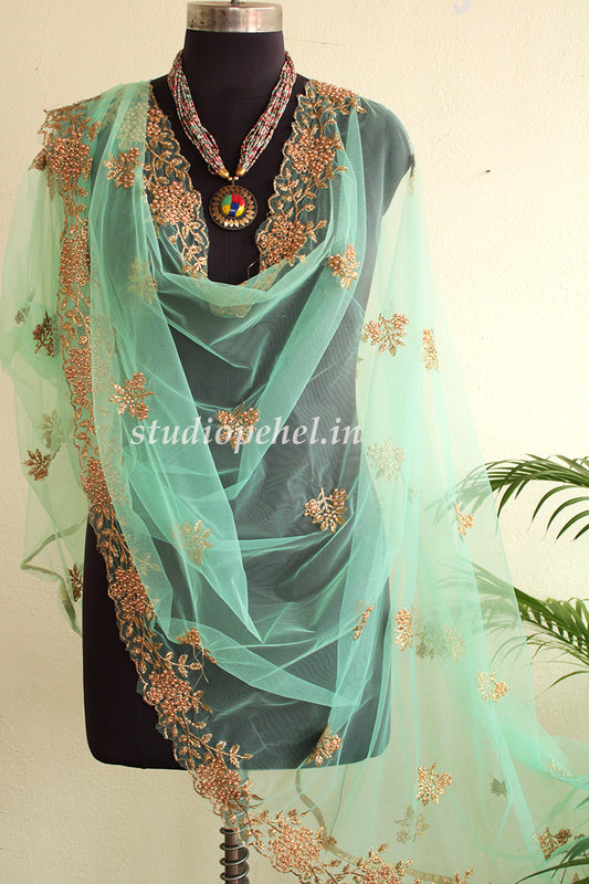 Out Of StockExclusive Embroidered Dupattas- Teal Ice