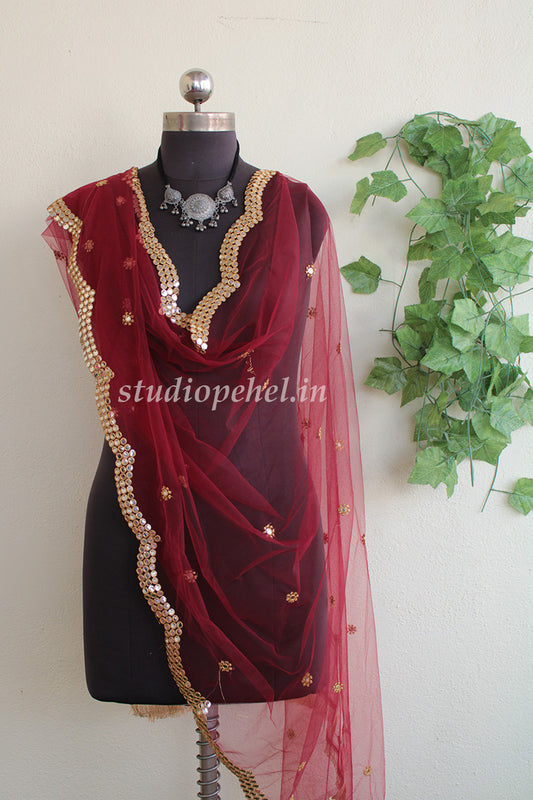 Out Of StockExclusive Embroidered Dupattas- Maroon