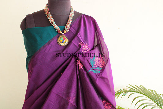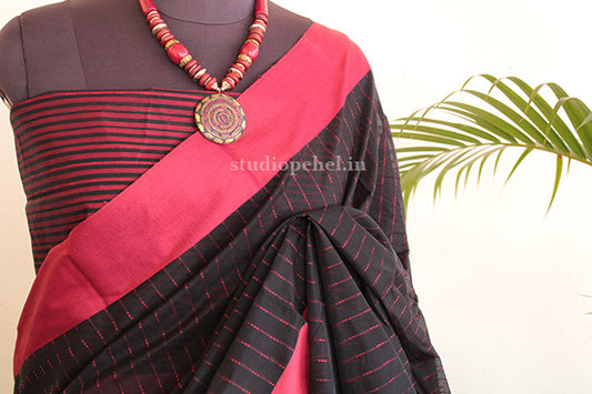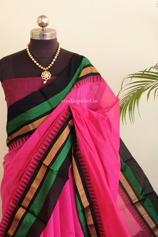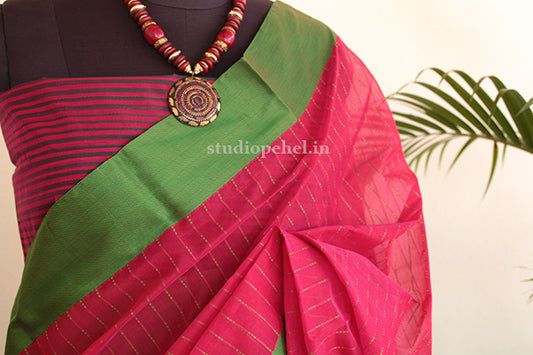 Out Of StockCotton Saree - Magenta & green