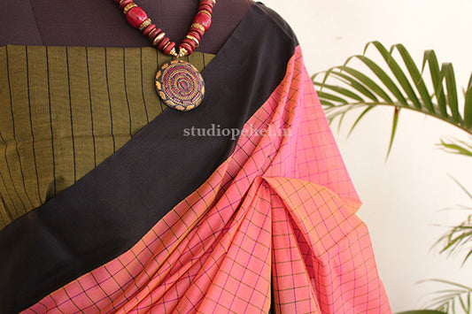 Out Of StockCotton Saree - Dust rose & navy