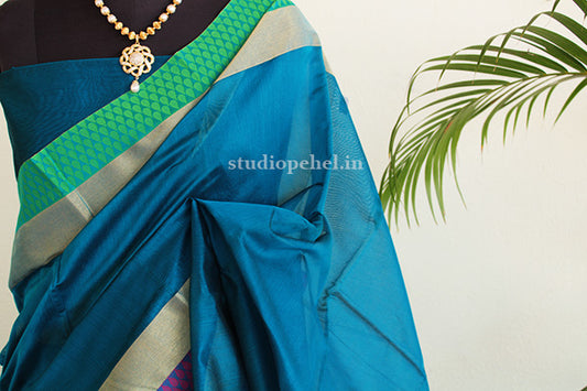Cotton Saree - Sea blue & green