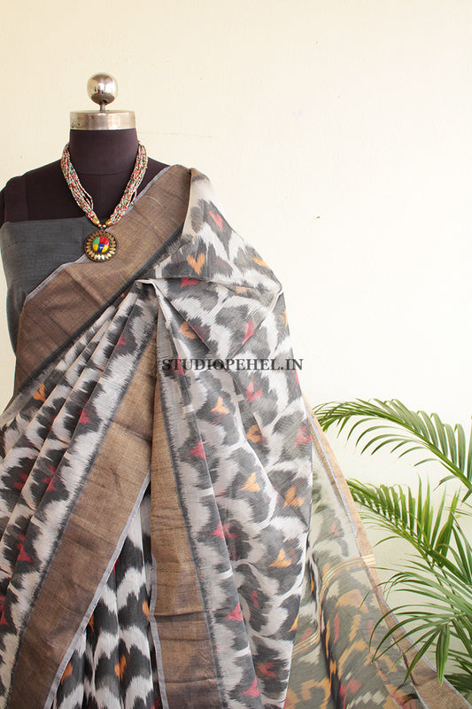 Out Of StockPochampally Saree - Silvery White