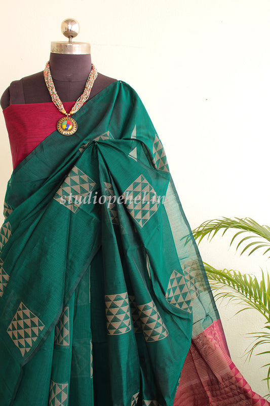 Out Of StockPochampally Saree - Bottle green