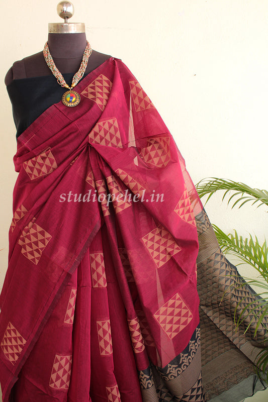 Out Of StockSilk Cotton Sarees - Rogue red